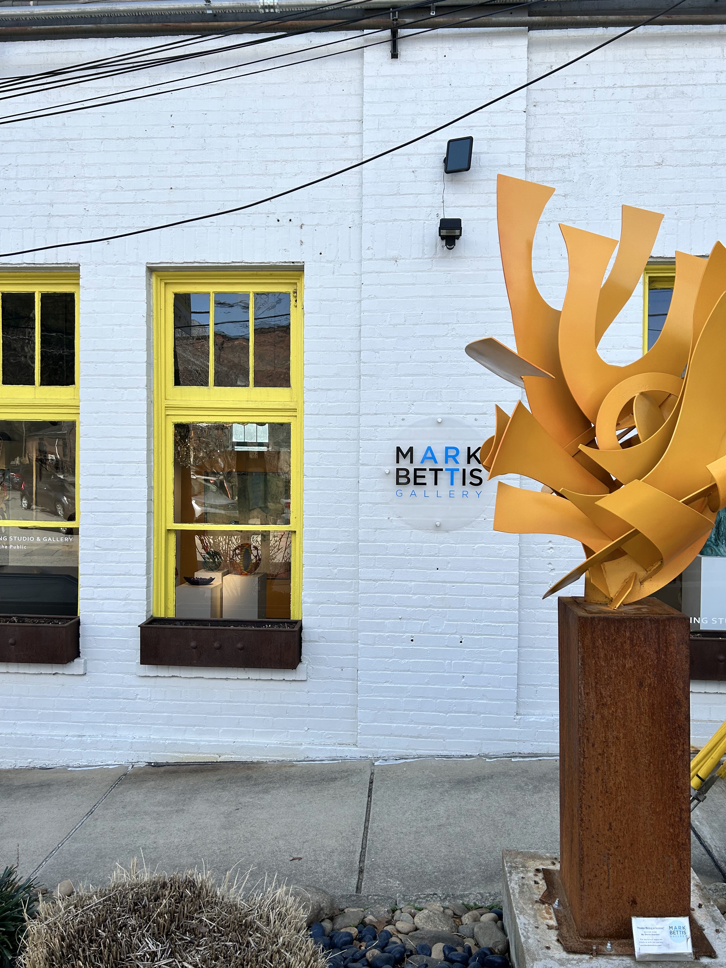 The next morning, we drove 13 miles to Black Mountain, a quaint town with shops and galleries. We landed at Cousins Cuban Cafe for some excellent cafe con leche and a guava and cheese pastelito. After enjoying my Cuban decadence, we drove to the River Arts District (RAD). This warehouse district along the French Broad River is perfect for strolling, exploring and taking in all the creativity this city prides itself in. The river also has an esplanade where runners, walkers and dogs seem to congregate. The multi-street area contained galleries, studios and cafes. Apparently this district was quite devastated during Hurricane Helene and continues to rebuild and improve. It was fabulous.