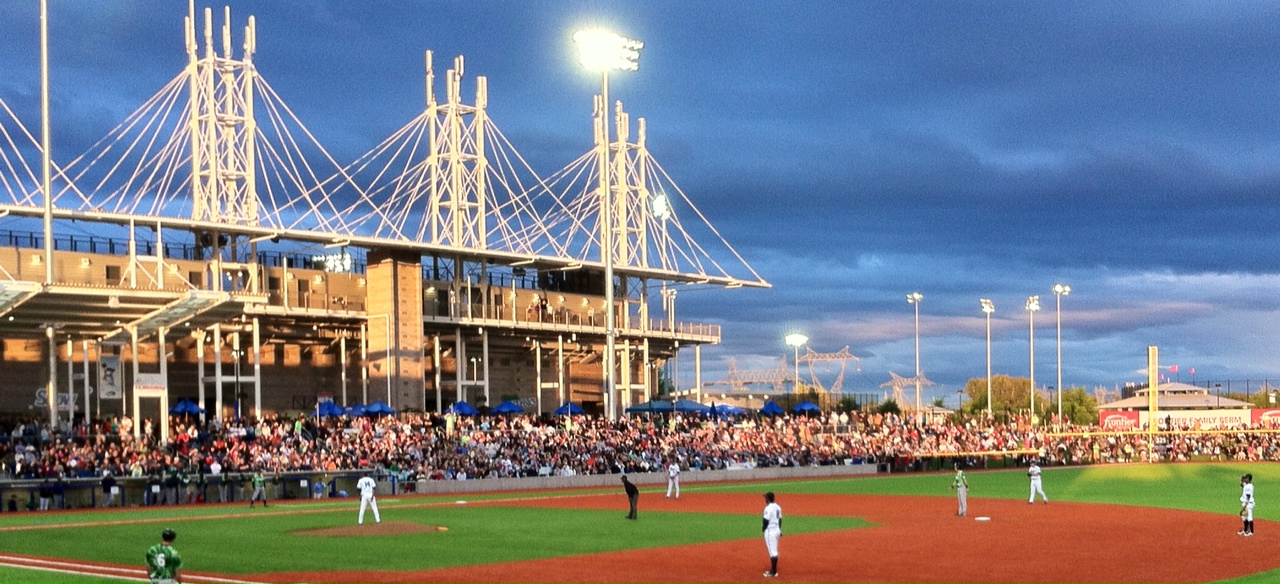 Last night baseball returned to Portland (or Hillsboro to be exact)! We took the girls to the inaugural opening game and the evening was magical. Magical because besides all the energy and excitement in the air, the night was beautiful and we even saw a double rainbow. In true baseball fashion, the music was loud and there were fun events and prize giveaways between each inning. Carli even ran across the field with a bunch of other kids as they chased the Hops mascot.