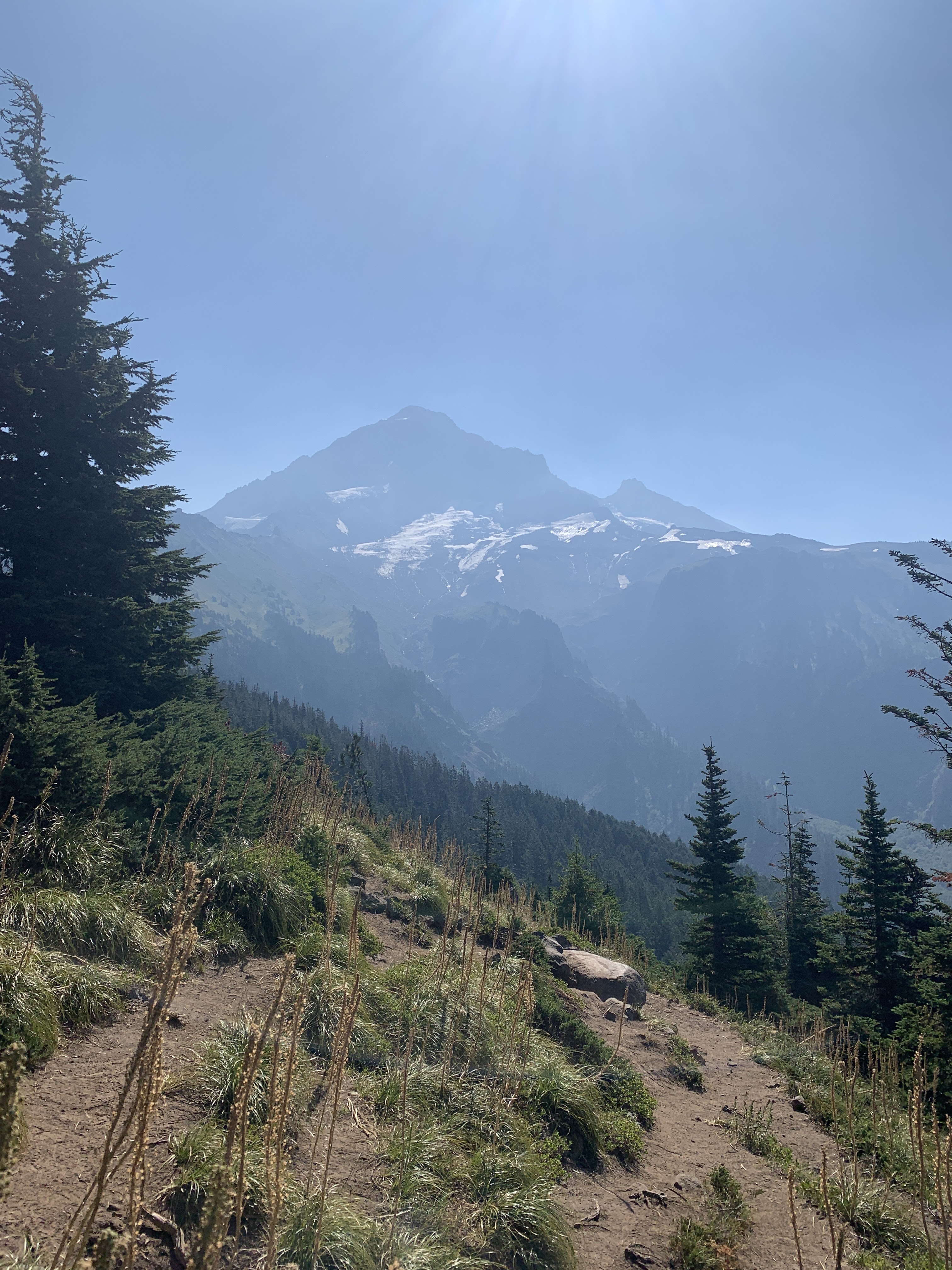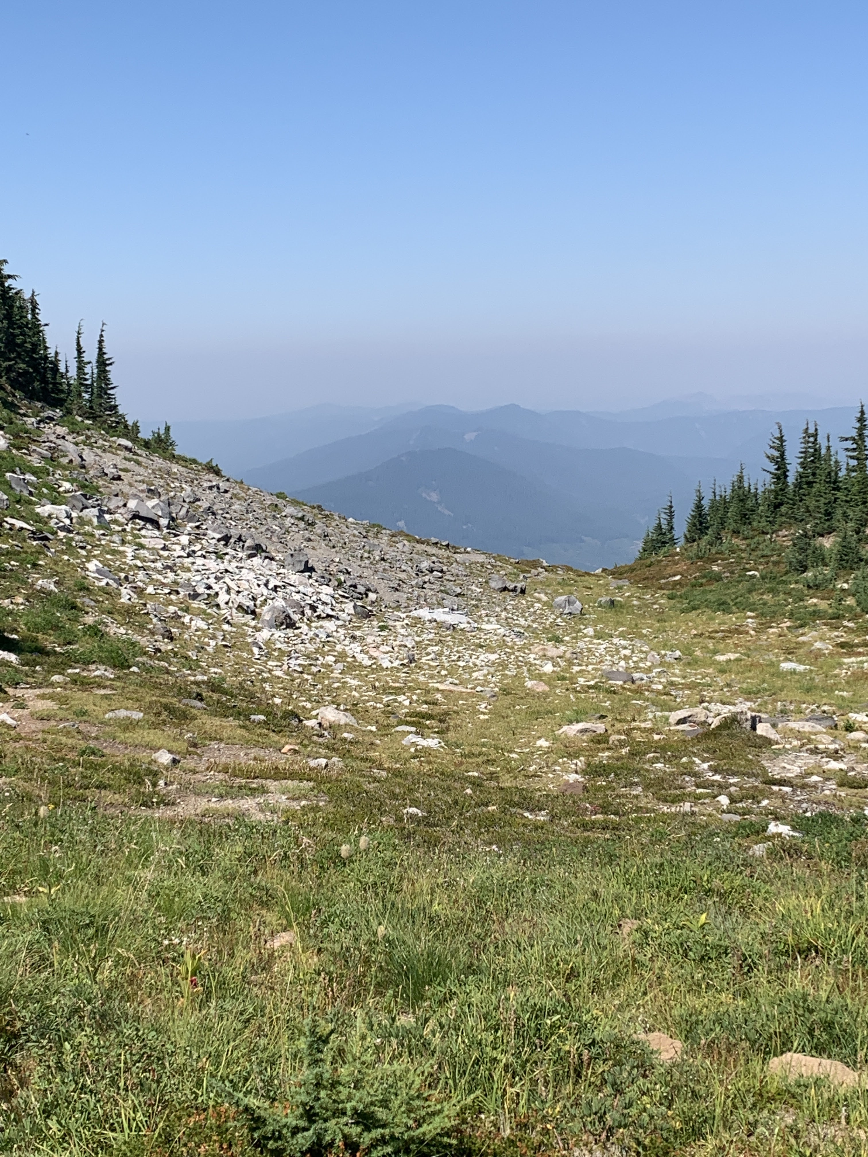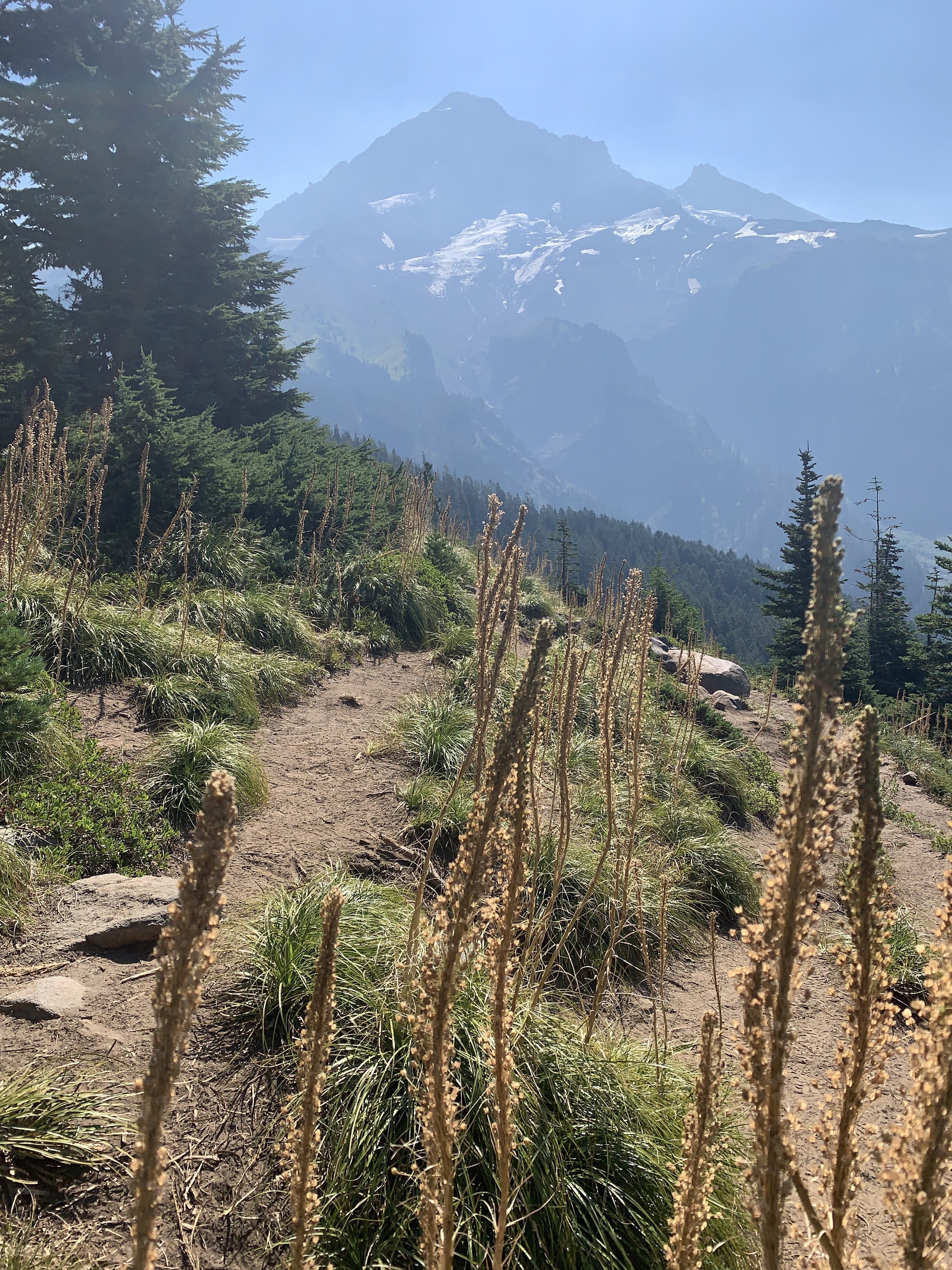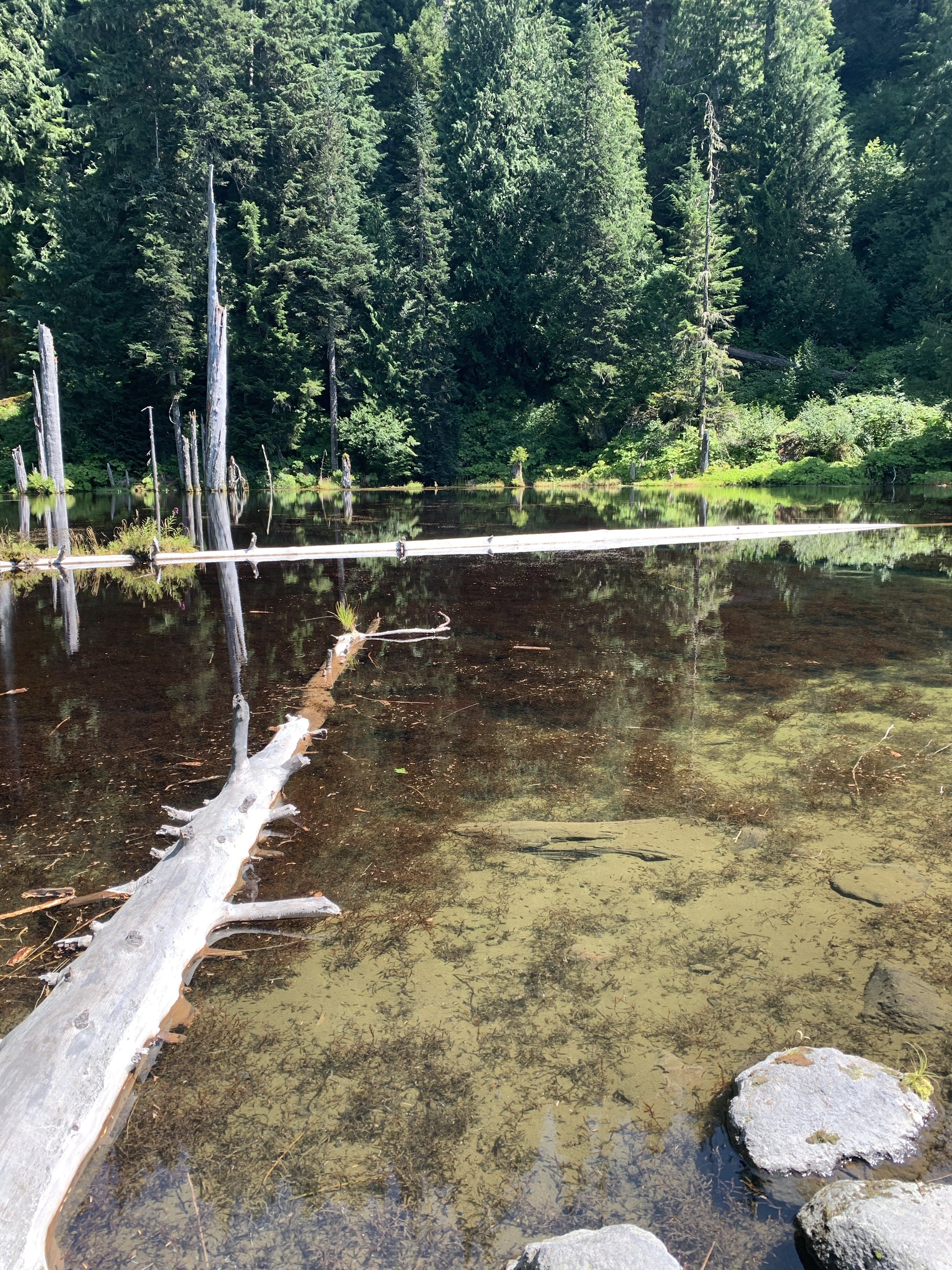 This hike has it all: lots of elevation, tons of blowdown, scrambling, water, wildflowers and amazing views. We first did the Bald Mountain loop and then hit several partial trails including the PCT, Cairn Basin, Timberline Trail and even a little of the Ramona Falls Trail (by accident). We went high above the two ponds to the McNeil Point shelter (a very solid stone structure). Scrambling down from the shelter was a bit perilous but overall my body felt it had done every inch of the 12 miles my GPS told me we did by the end!
