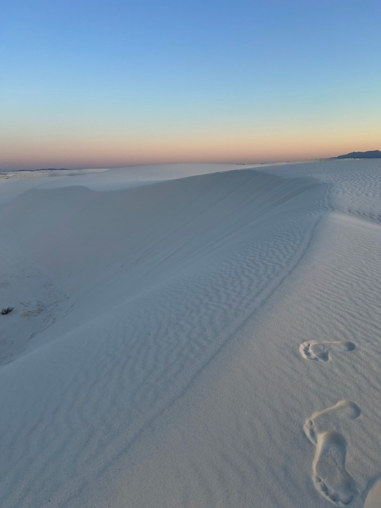 I drove to Alamogordo for dinner since it is only 14 miles past White Sands National Park and sunset was the goal. I headed to the park at 6 p.m. Unfortunately the visitor center closed at 6 so I headed right into the park. It, too, was a free entry since it was after 6 p.m. It is mind blowing that the sand oasis exists in the middle of nowhere. It looks like snow but it really is sand! This park was the highlight of my trip.