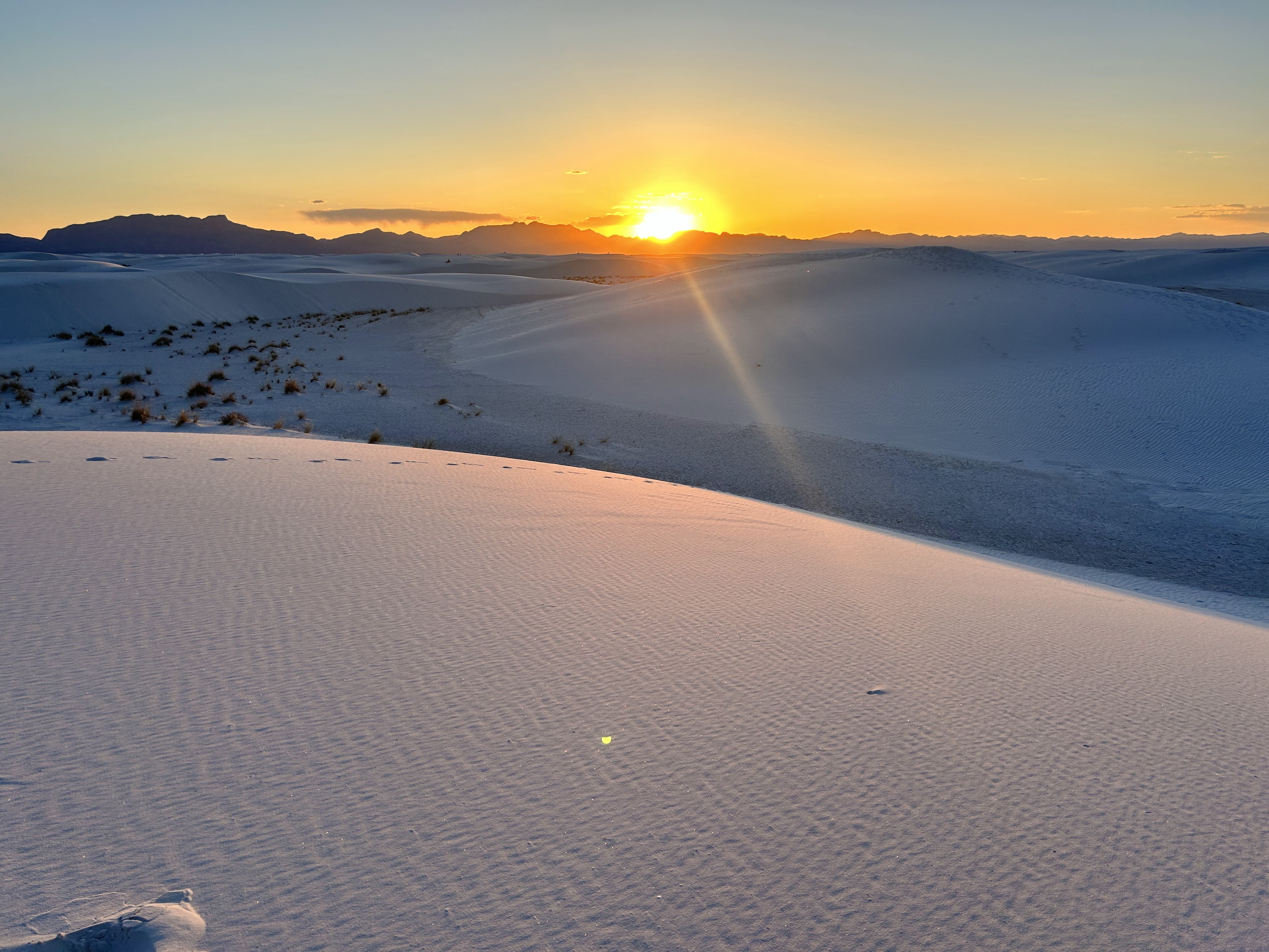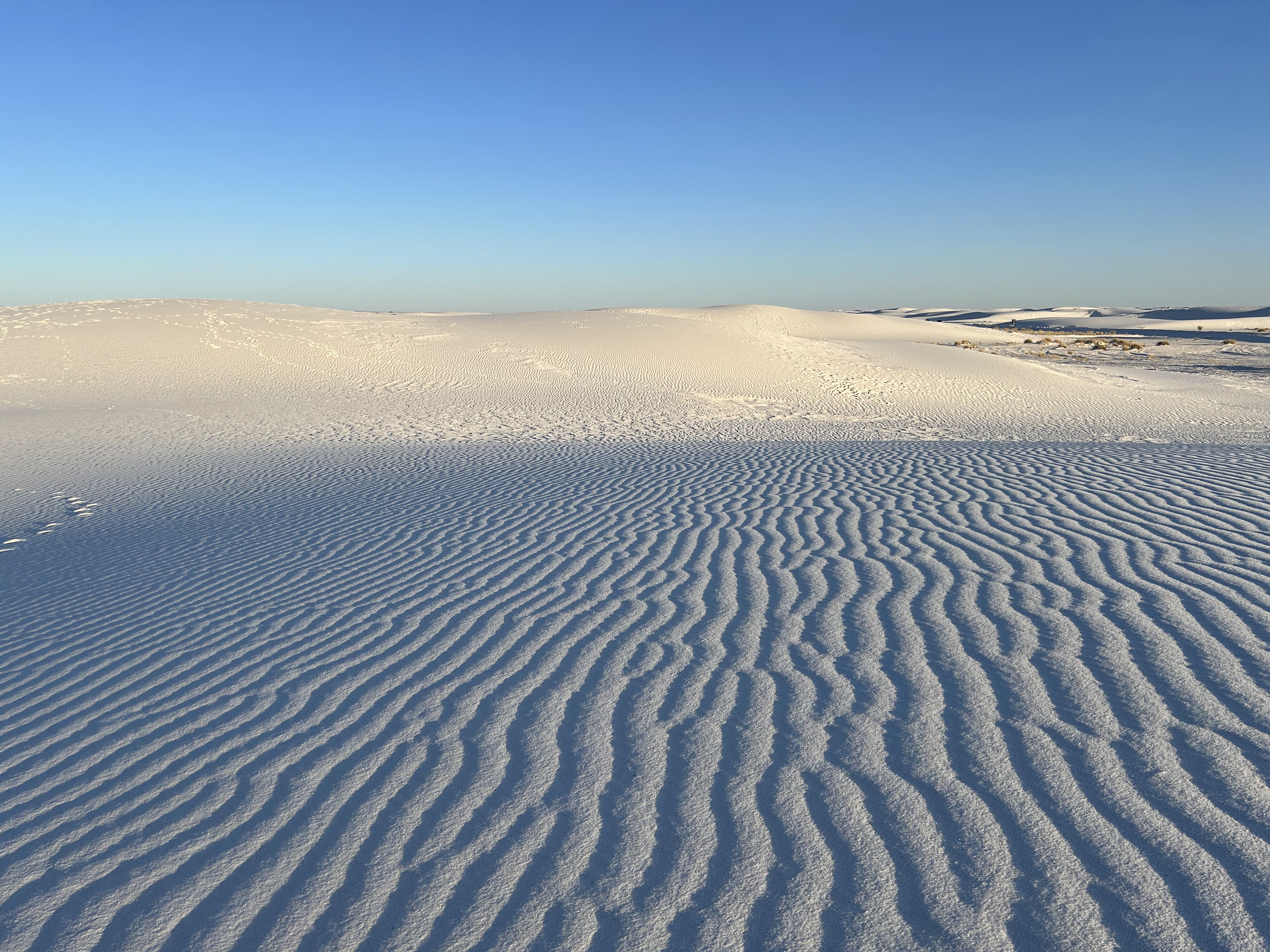 I drove to Alamogordo for dinner since it is only 14 miles past White Sands National Park and sunset was the goal. I headed to the park at 6 p.m. Unfortunately the visitor center closed at 6 so I headed right into the park. It, too, was a free entry since it was after 6 p.m. It is mind blowing that the sand oasis exists in the middle of nowhere. It looks like snow but it really is sand! This park was the highlight of my trip.