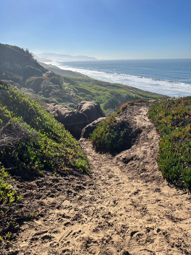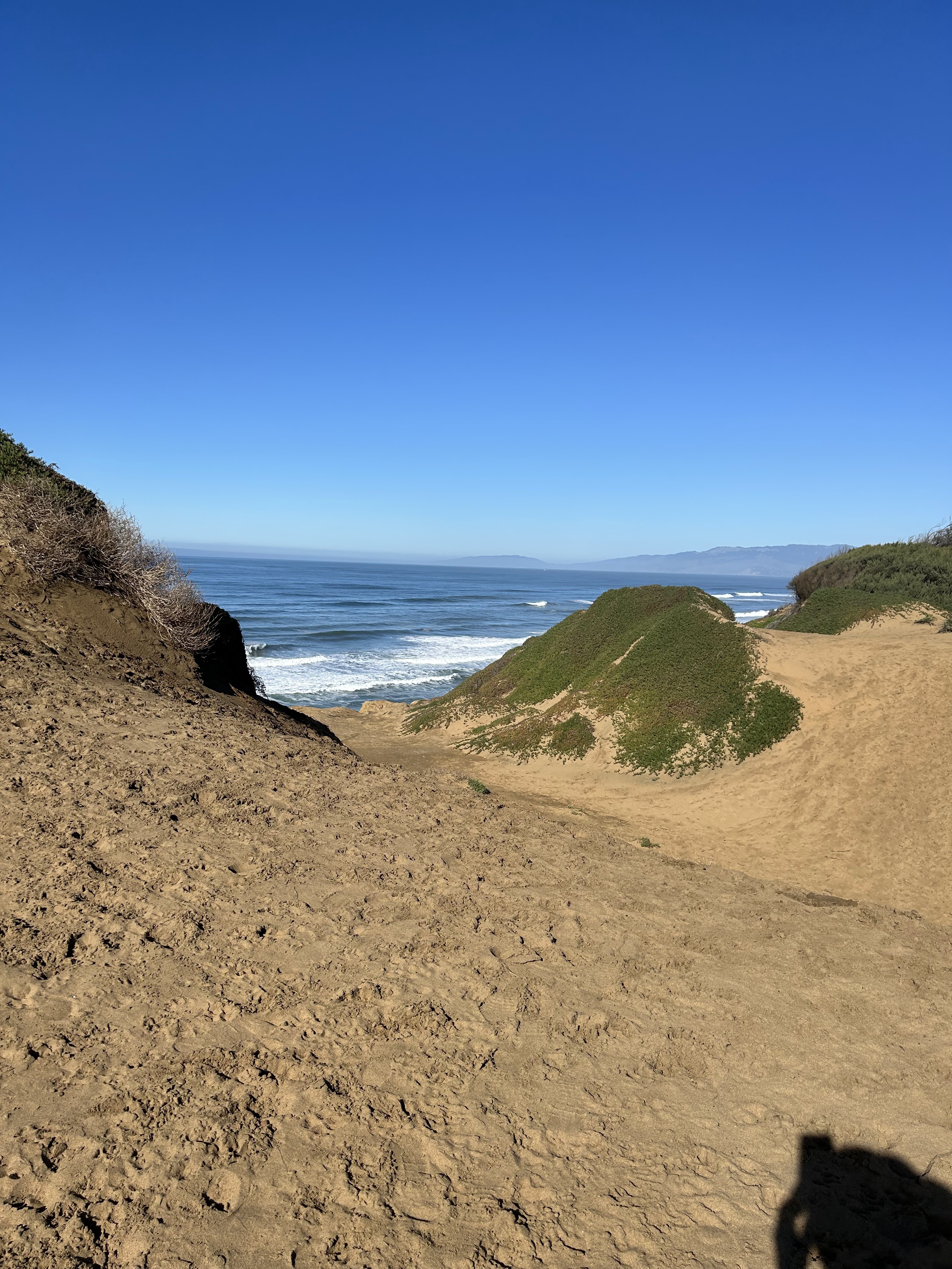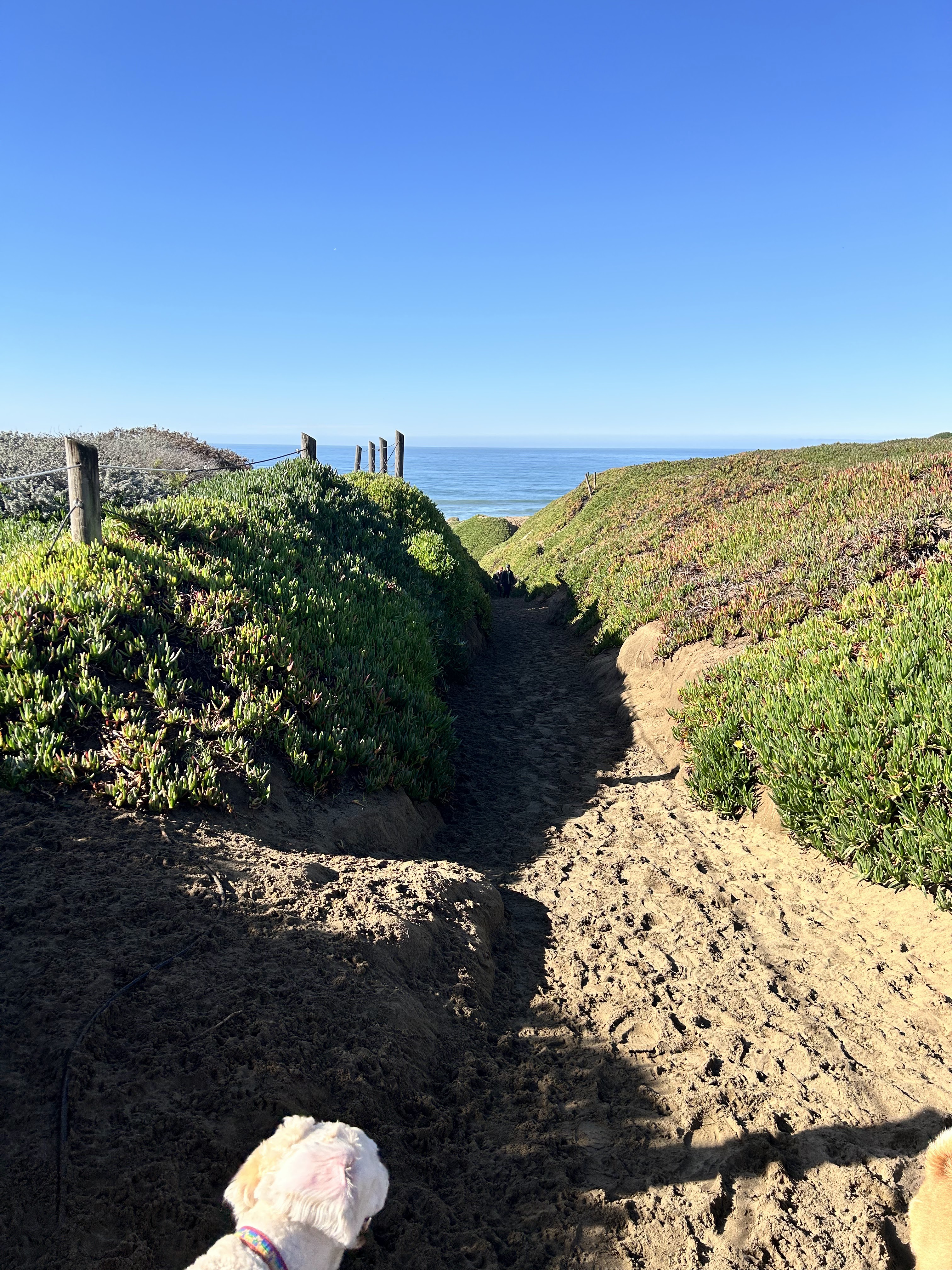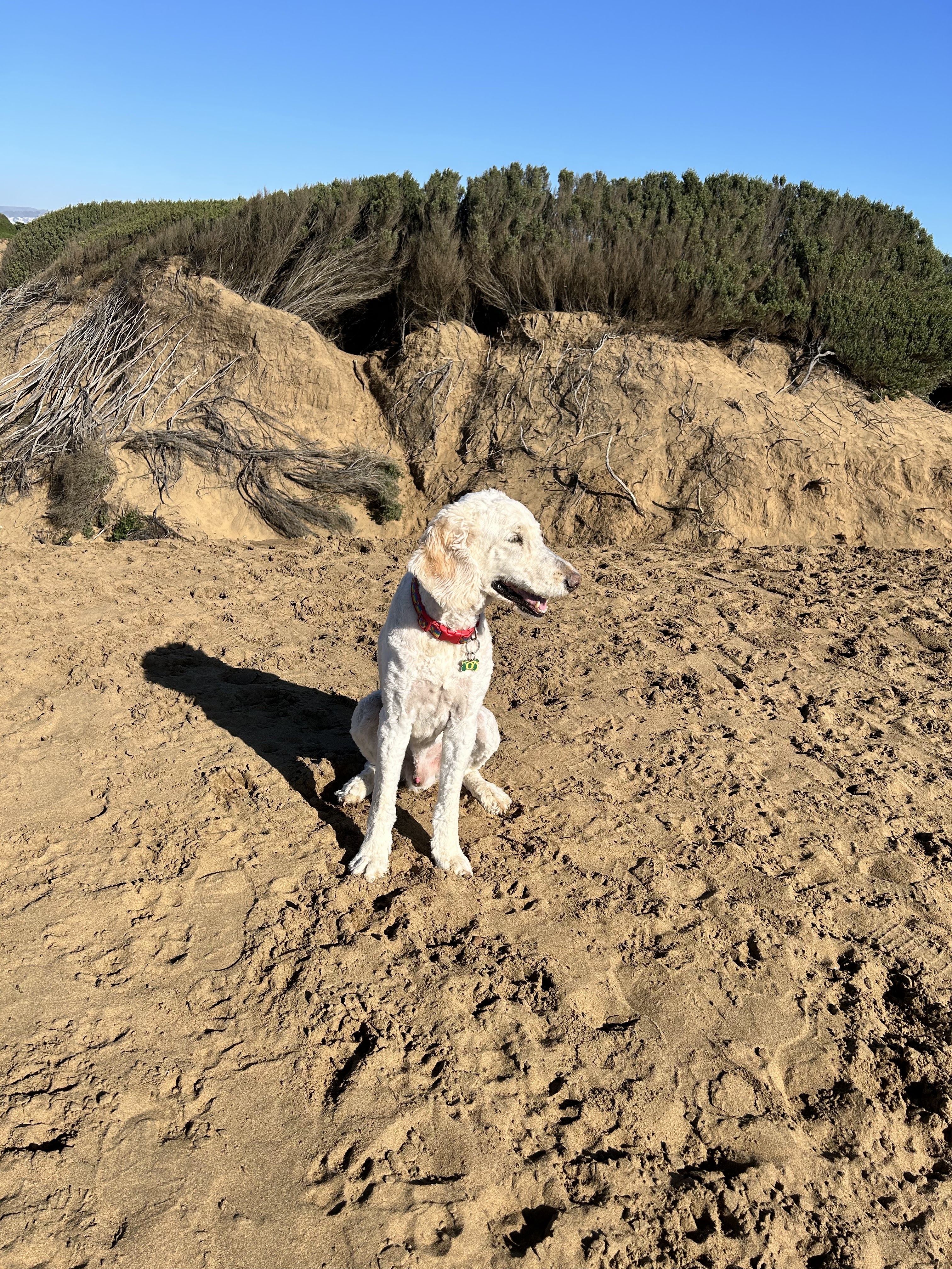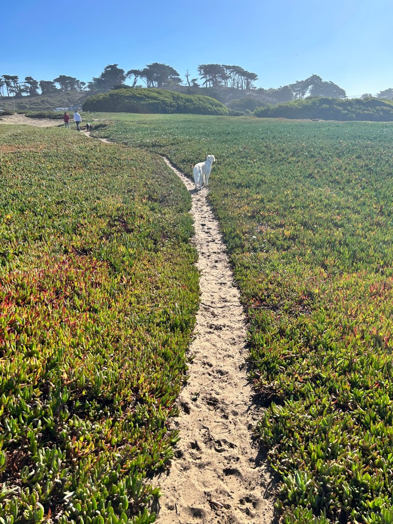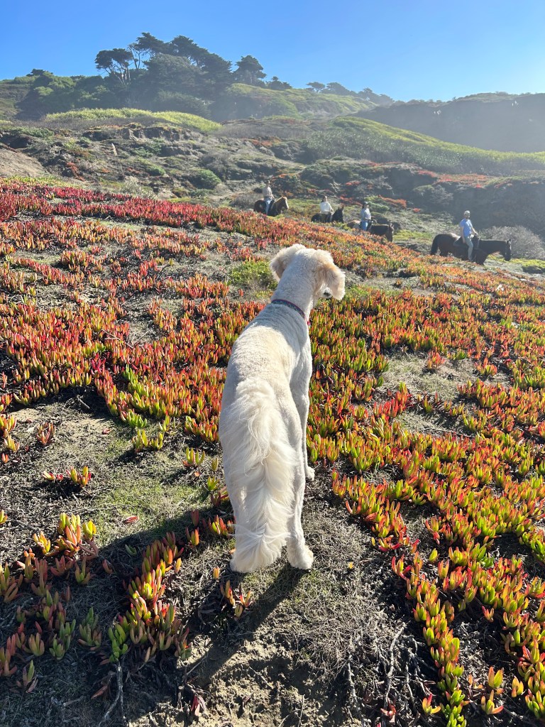 Yet another former military outpost that is now a fantastic park. Fort Funston was a 30 minute drive and a great outing for me and Pete! The sand dunes, trails on the cliffs and the beach were perfect. Ample parking made the trip easy and Pete met so many dogs and was a bit surprised by the horses!
