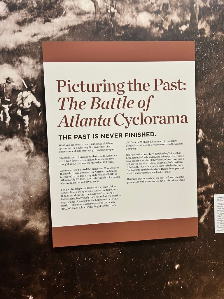 Today I visited the The Atlanta History Center. It is one of the most varied museums I’ve seen with a large museum, three historic houses, and 33 acres of gardens and trails. Key things to see include the iconic Cyclorama painting, the elegant Swan House mansion, and the interactive Smith Family Farm.