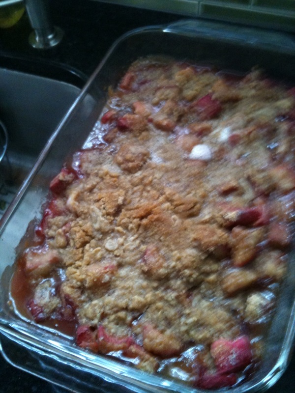 Yesterday my mother-in-law gave me some rhubarb from her garden. I could not wait today to make my favorite recipe: Rhubarb Crumble from a 2009 issue of Oprah Magazine. It was so good, I even gave some to my neighbors!