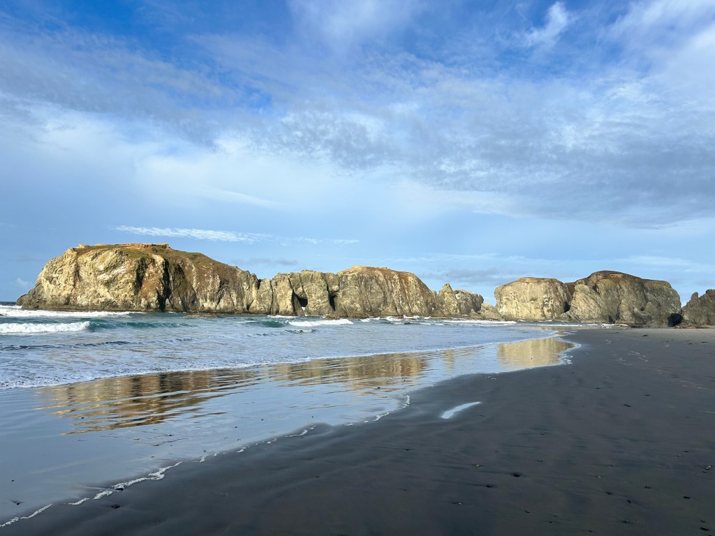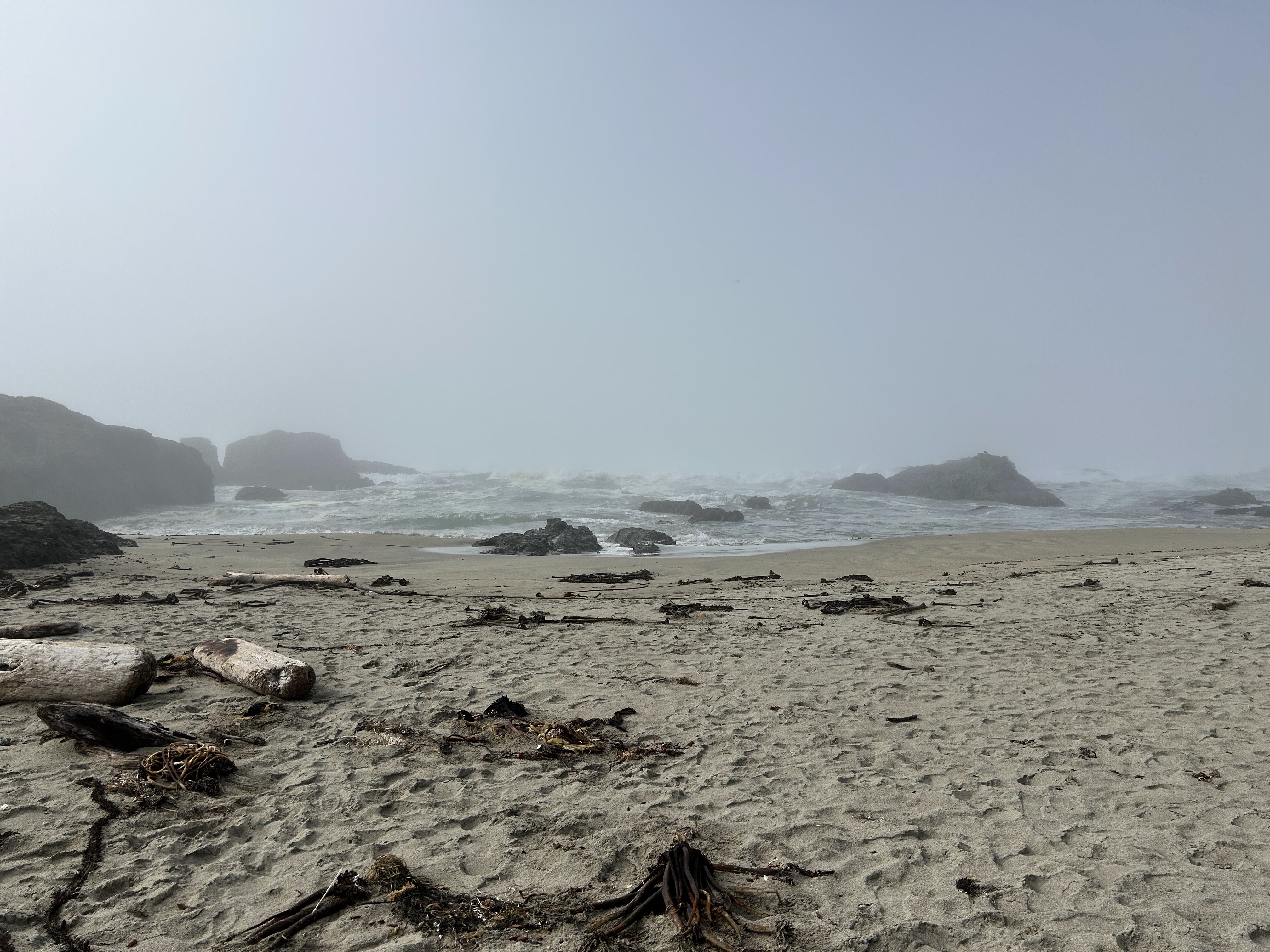 Shortly after exiting the redwood drive, I hopped on Highway 1. It was 30 miles of soft serve ice cream curves…in other words, very, very curvy. And no guardrails which is always a nail biter. But after 30 miles you are popped right out to the ocean cliffs. The views are stunning and the waves were powerful. We stopped at Seaside Beach. Just more loud waves, more rocks jutting out of the water and more beauty for free. I was also able to find a few mussel shells for my friend Jenny. She does amazing art with mussel shells.