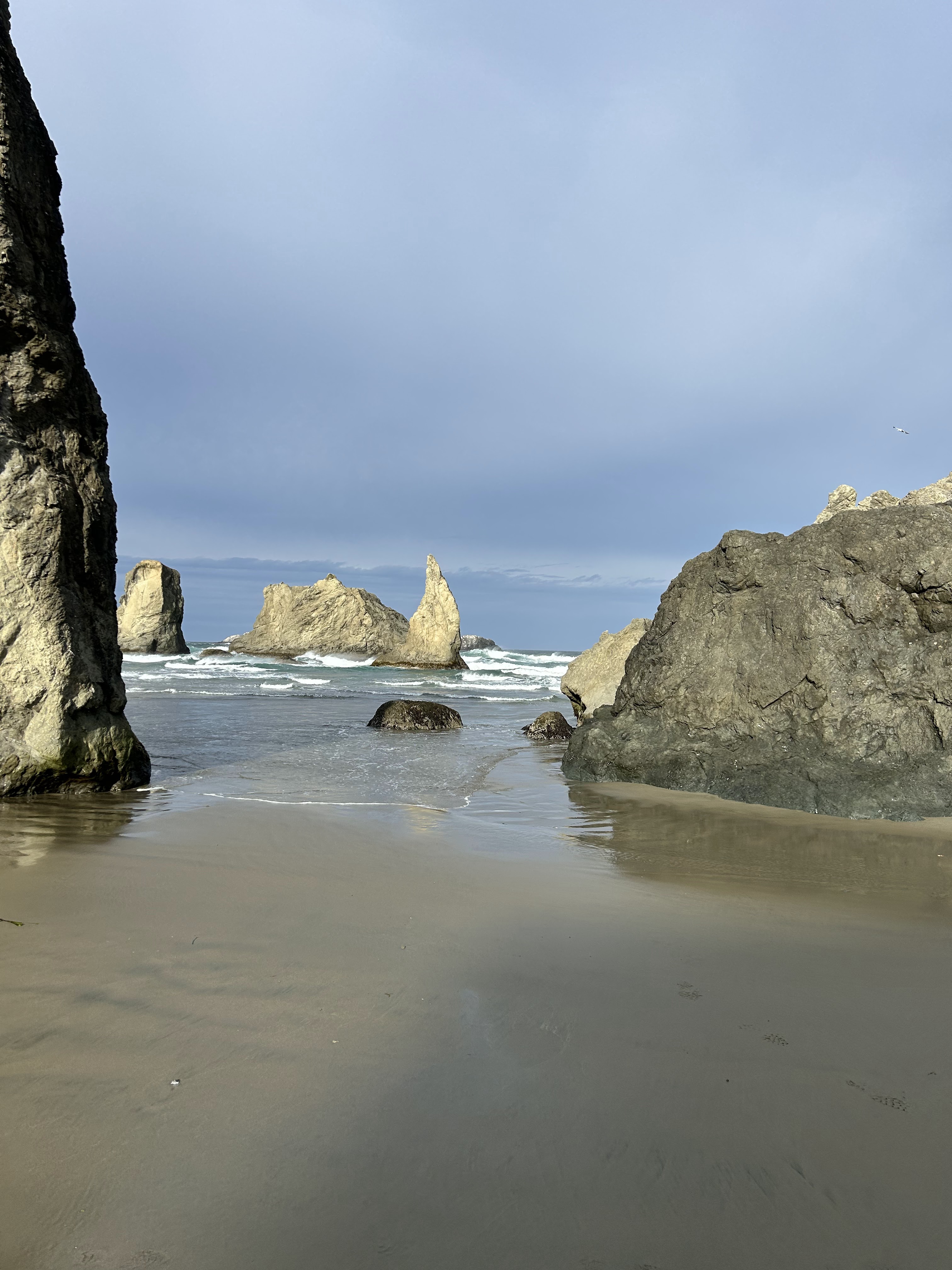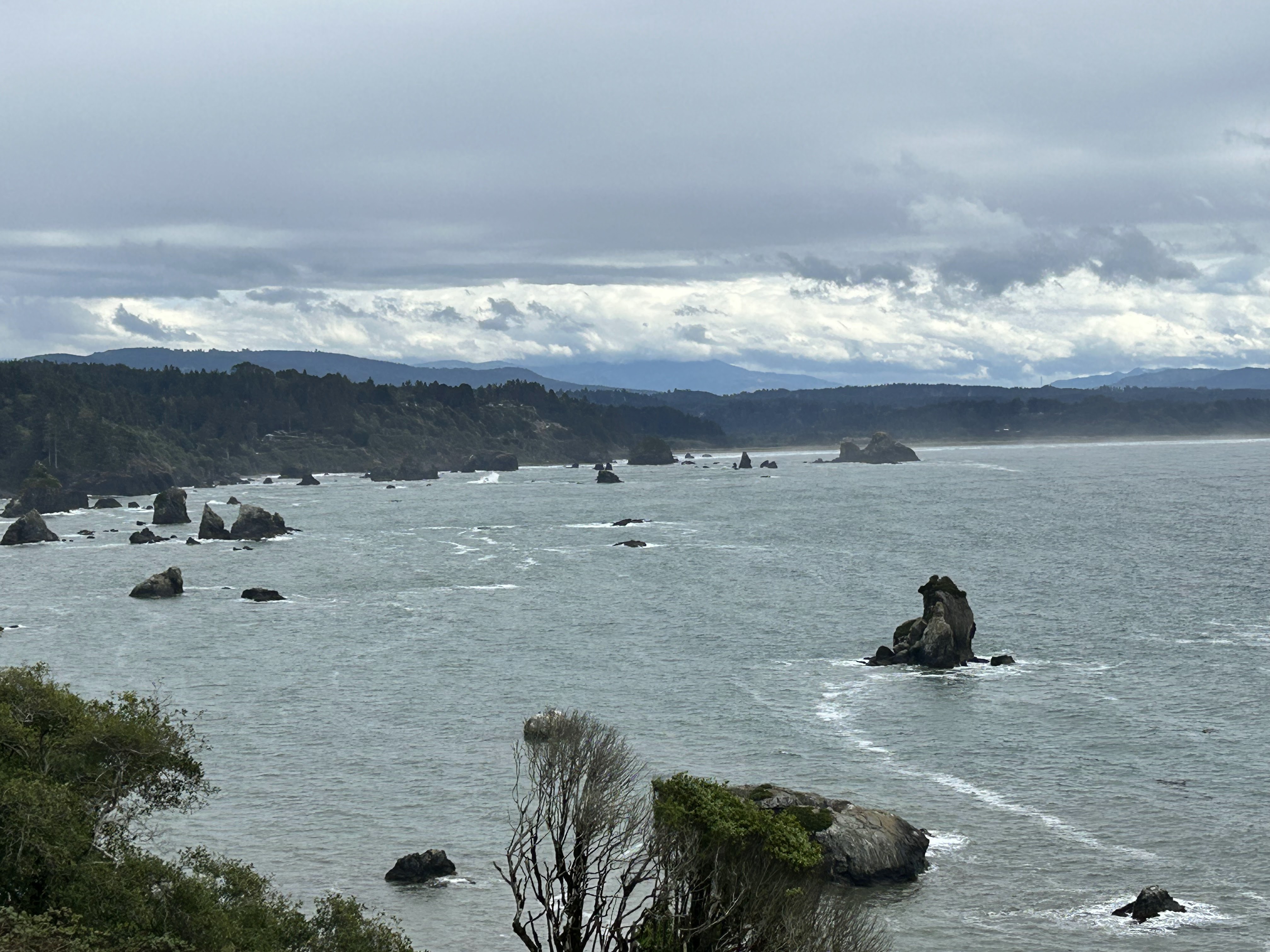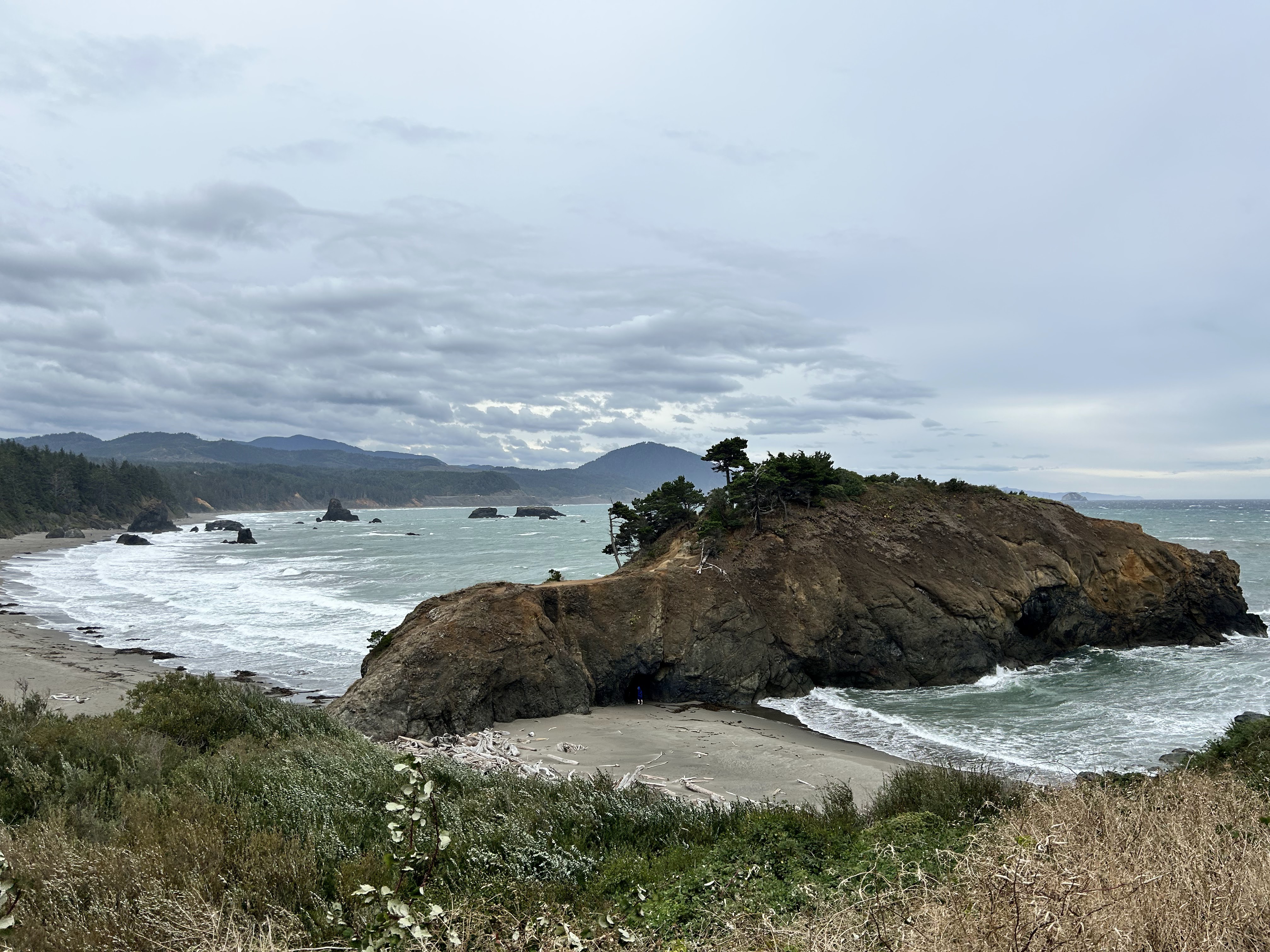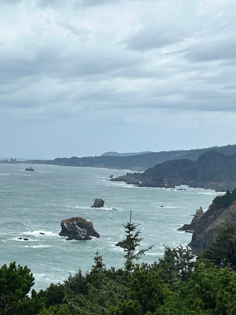 Port Orford was next. It was a quaint town focused on art. We stopped at the Battle Rocks Wayside Park for the stunning views and then moved on to Gold Beach. Gold Beach is where the Rogue River and the ocean meet. We stopped quickly at a viewpoint but then moved on as the weather was very wet.