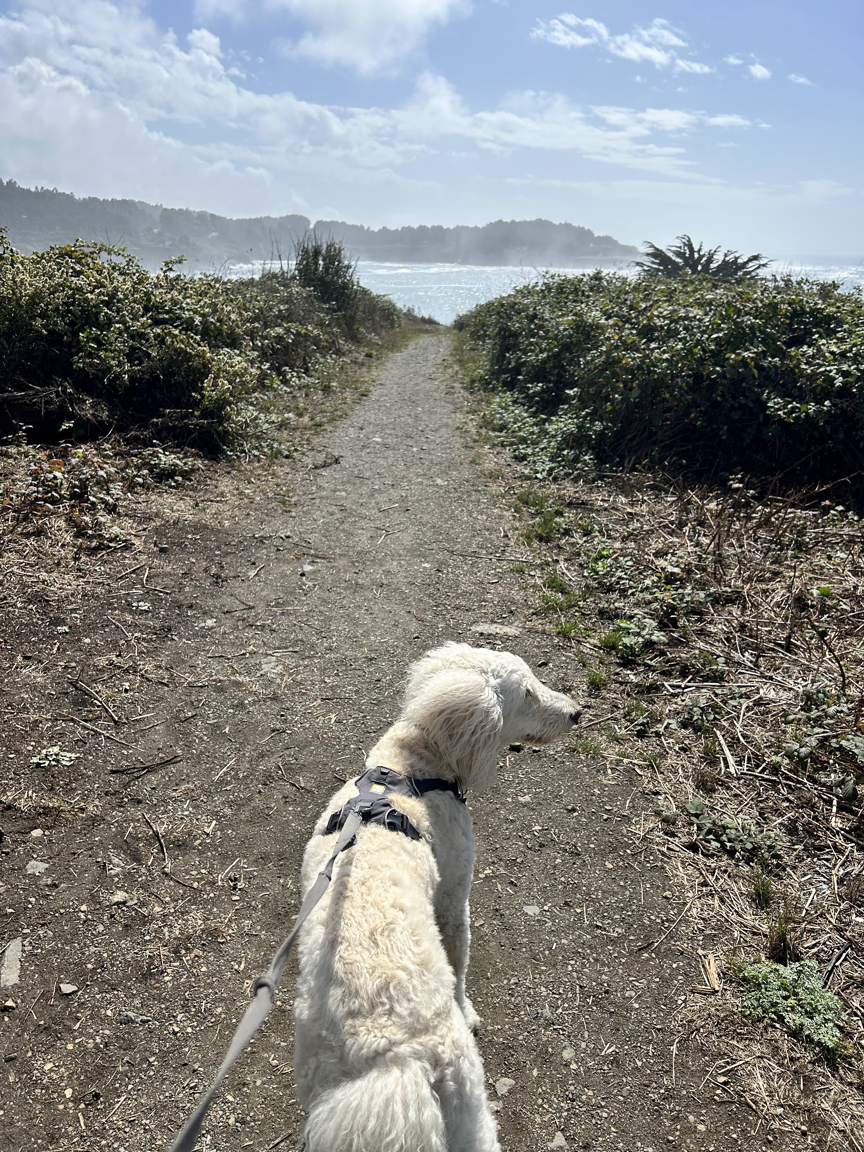 Later that afternoon, we walked down to the beach and meandered an hour further along the coast, returned to our room and ordered takeout sushi. Our final morning we grabbed coffee and returned to the beach so that Pete could have his final roll in the sand. We stopped in Palo Alto on our way home for lunch and a quick mall saunter. It was a fantastic weekend with my daughter!