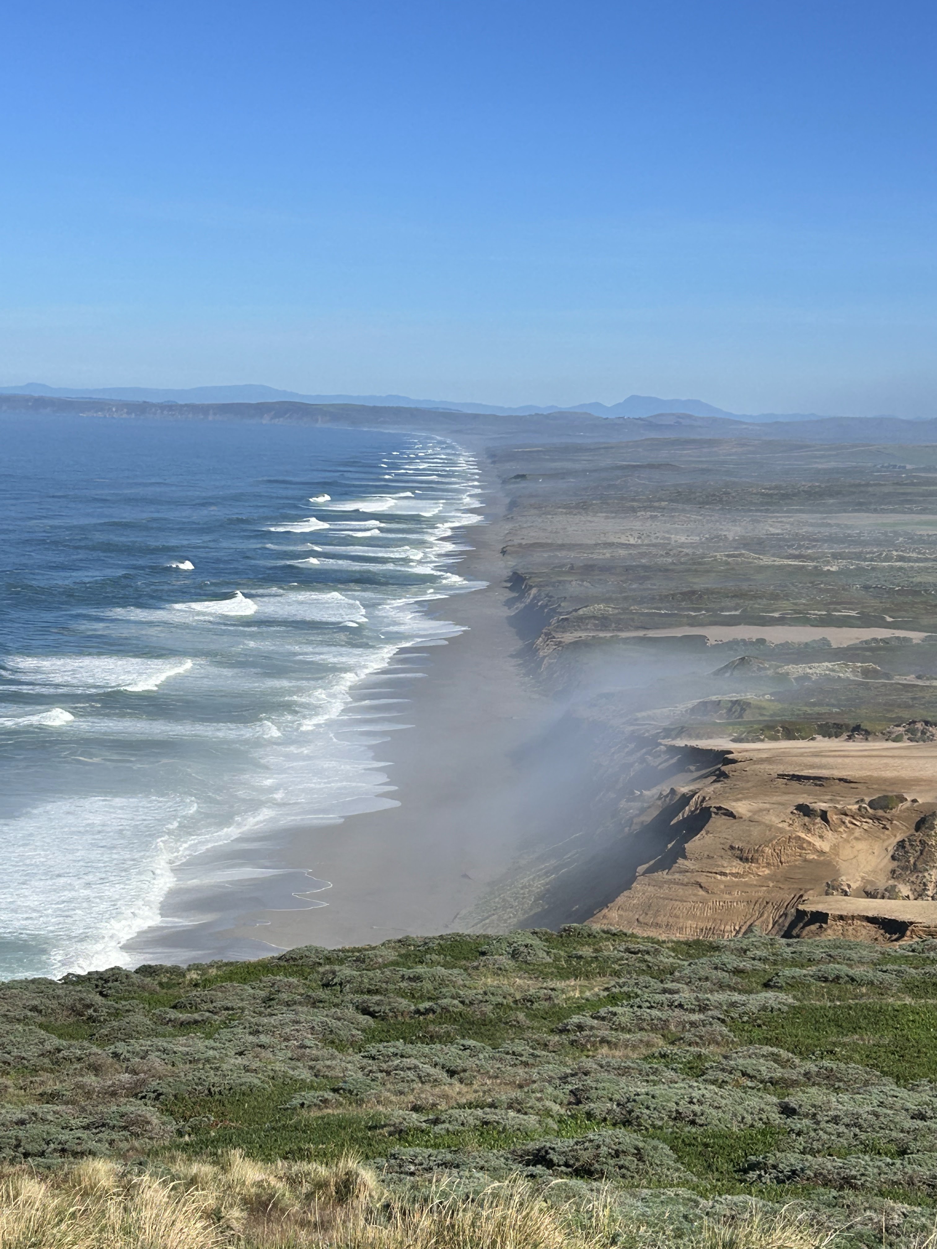 Walk through any European city and there is always a gaggle of amazing churches adorned with stained glass, gold and other embellishments. After visiting these churches I think to myself, “Surely the next church cannot be as spectacular as this one.” And yet, it is as spectacular…or even better. This is how I feel about California. Every area I visit, I think, “Wow, this is so beautiful. There cannot possibly be anything more beautiful.” I then go somewhere else, like today’s trip to Point Reyes National Seashore. On my drive to the park, I see lush rolling hills, grazing cows, a large reservoir covered with fog (even though sun is everywhere else), tons of bramble and cyclists galore. Another beautiful place with curvy roads included (of course).