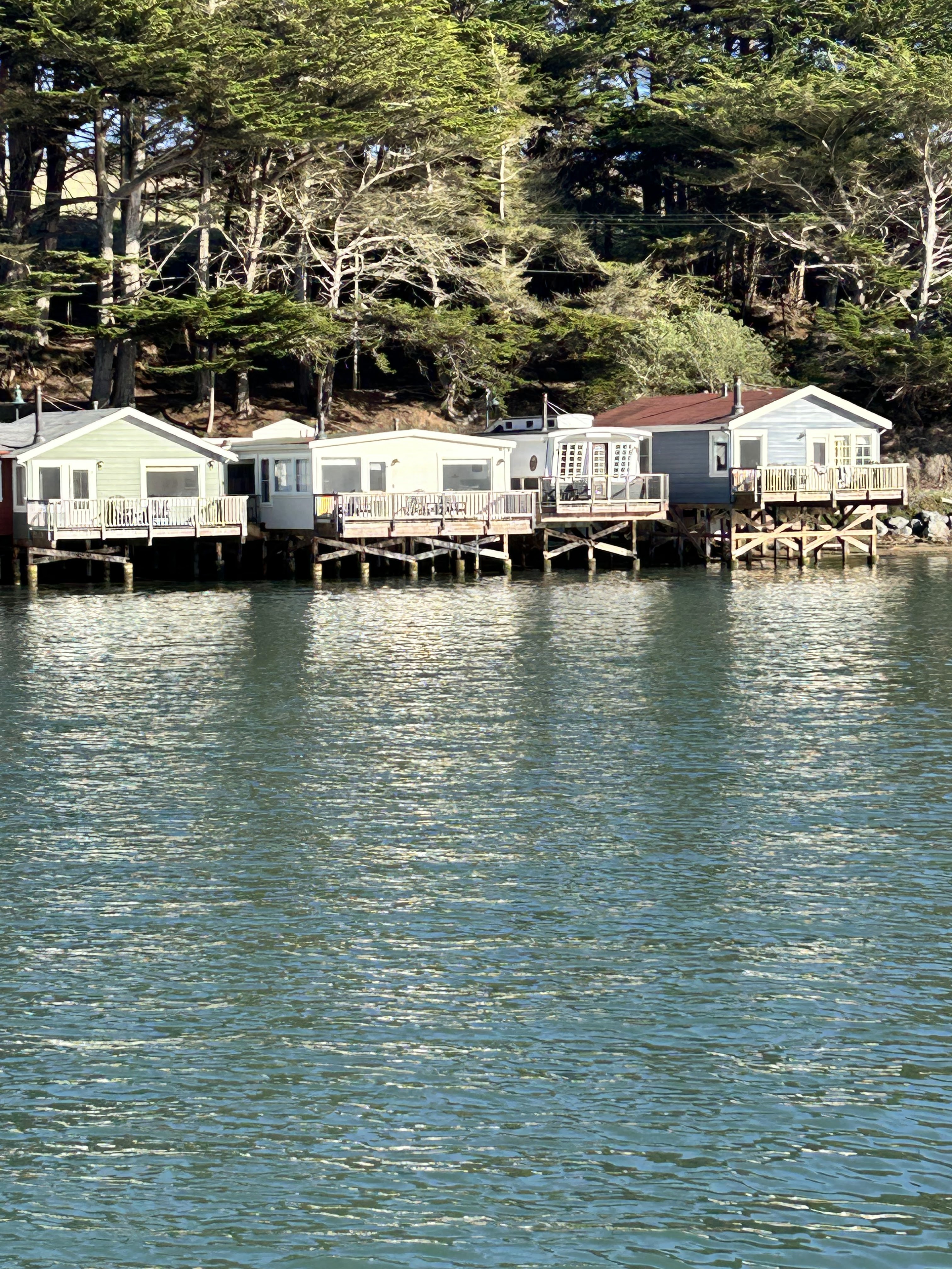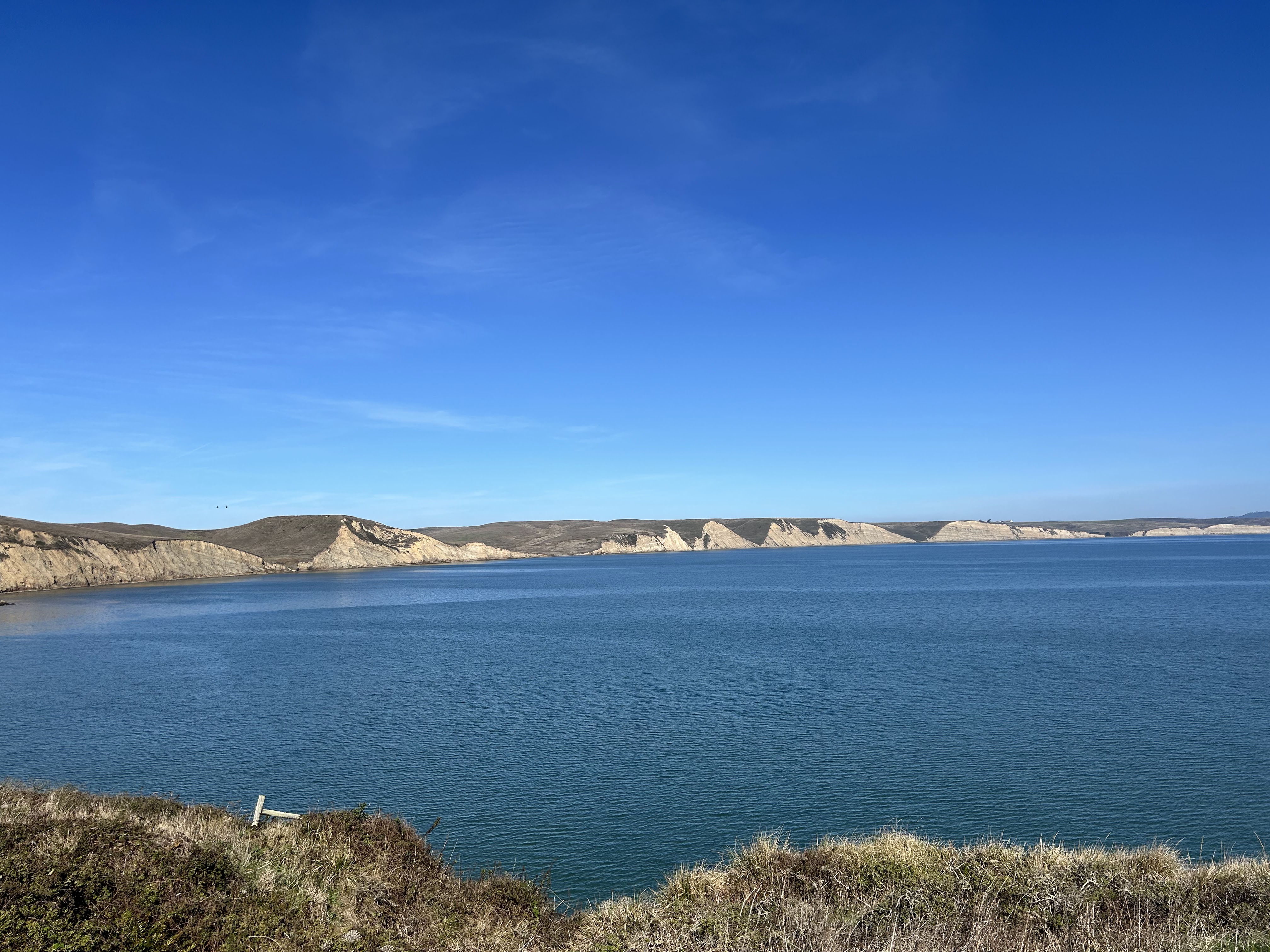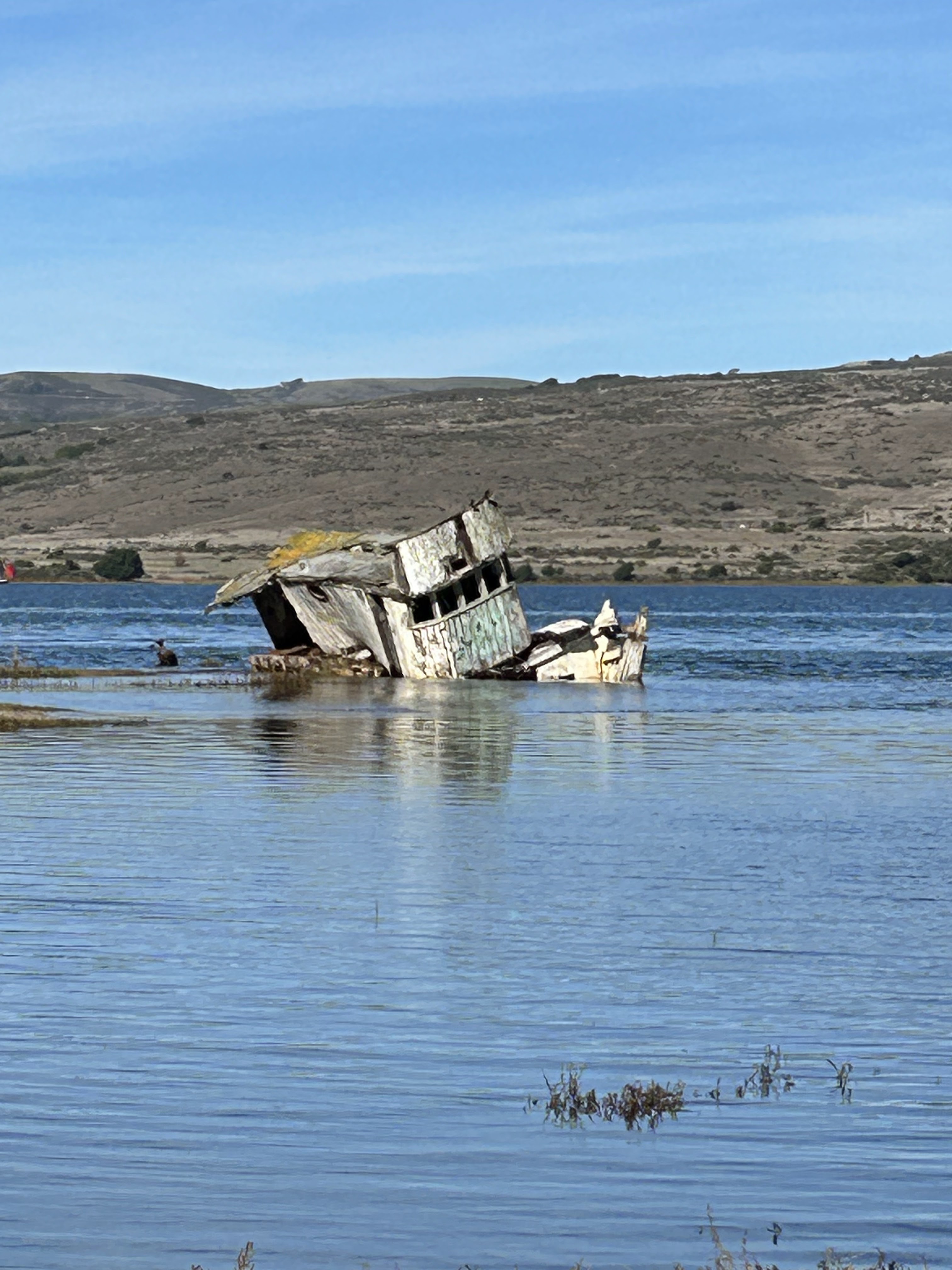 After the beach rolling, we drive along Tomales Bay, which includes the “required” stop to take a picture of the famous shipwreck. Underwhelming (the boat not the bay) in my opinion, but I did it. I did not visit the cypress tree because I was ready for a late lunch! I headed out of the park and north on CA-1 to Marshall. Hog Island Oysters was packed so I drove more north to Nick’s Cove. Pete and I sat outside on the deck/pier and enjoyed more sun and fish and chips. It truly was a perfect day.