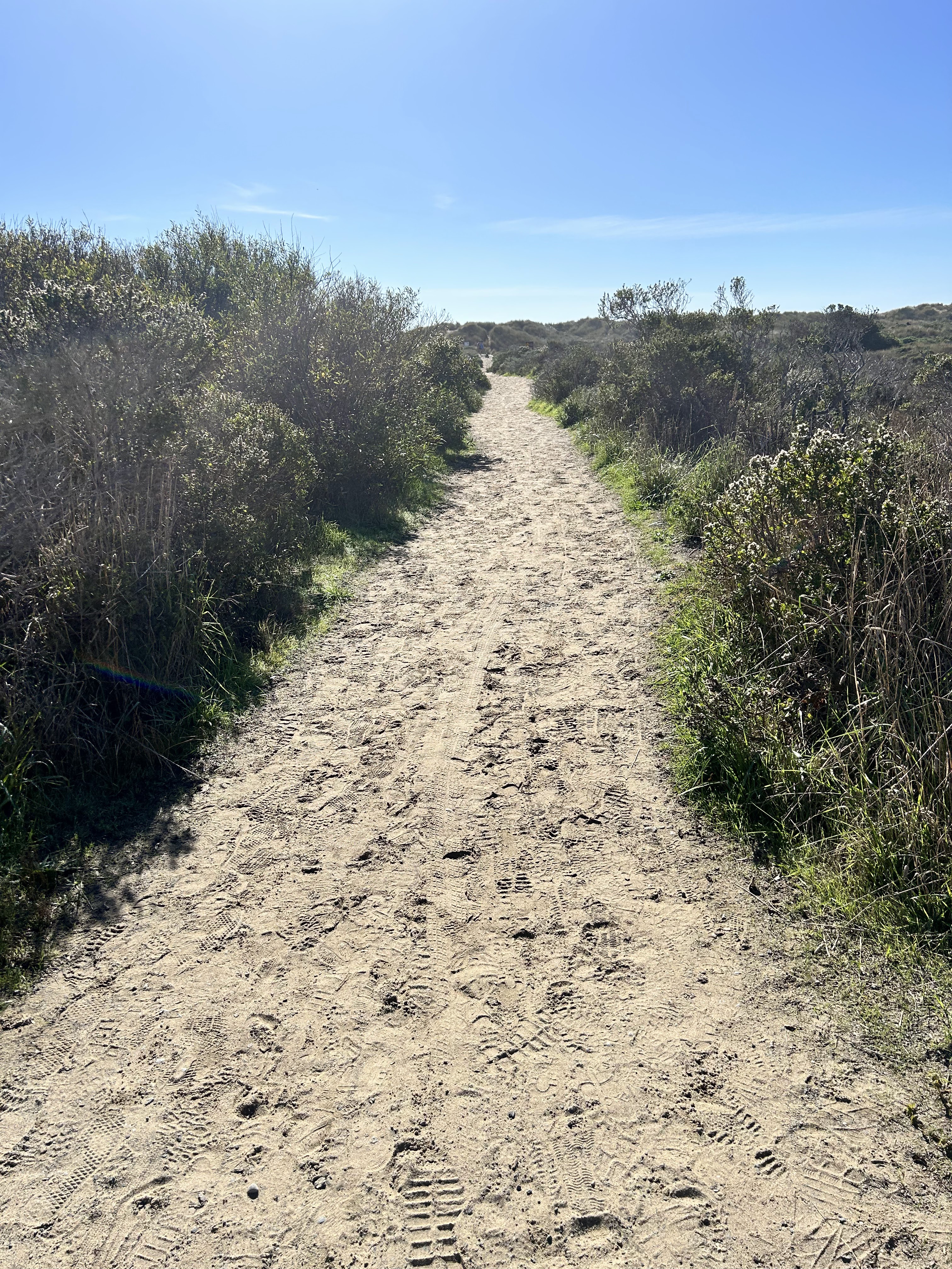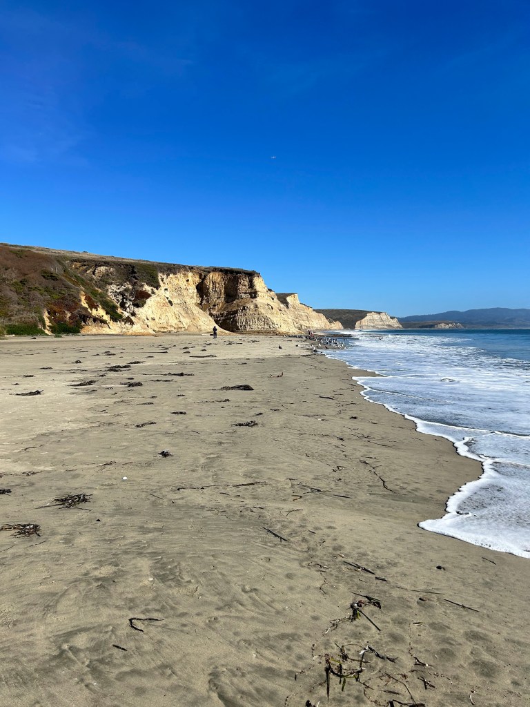 Today I hiked the Batteries to Bluffs Trail. The sweeping ocean views and bonus of walking on the beach coupled with the Golden Gate Bridge in the background made this hike a stellar one. The weather was perfect; I should have worn sunscreen! I even managed to find a mussel shell for my friend who makes art from the shells. I never really noticed mussel shells until I saw her work. Now, I think they are beautiful and am always looking for shells to send to her.