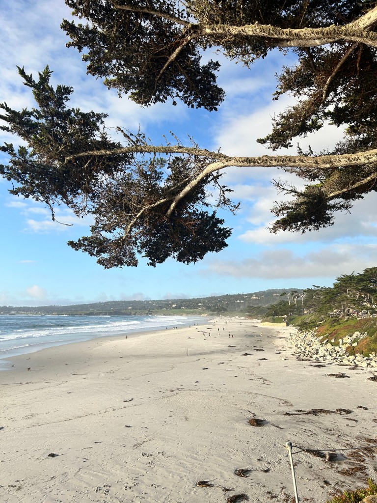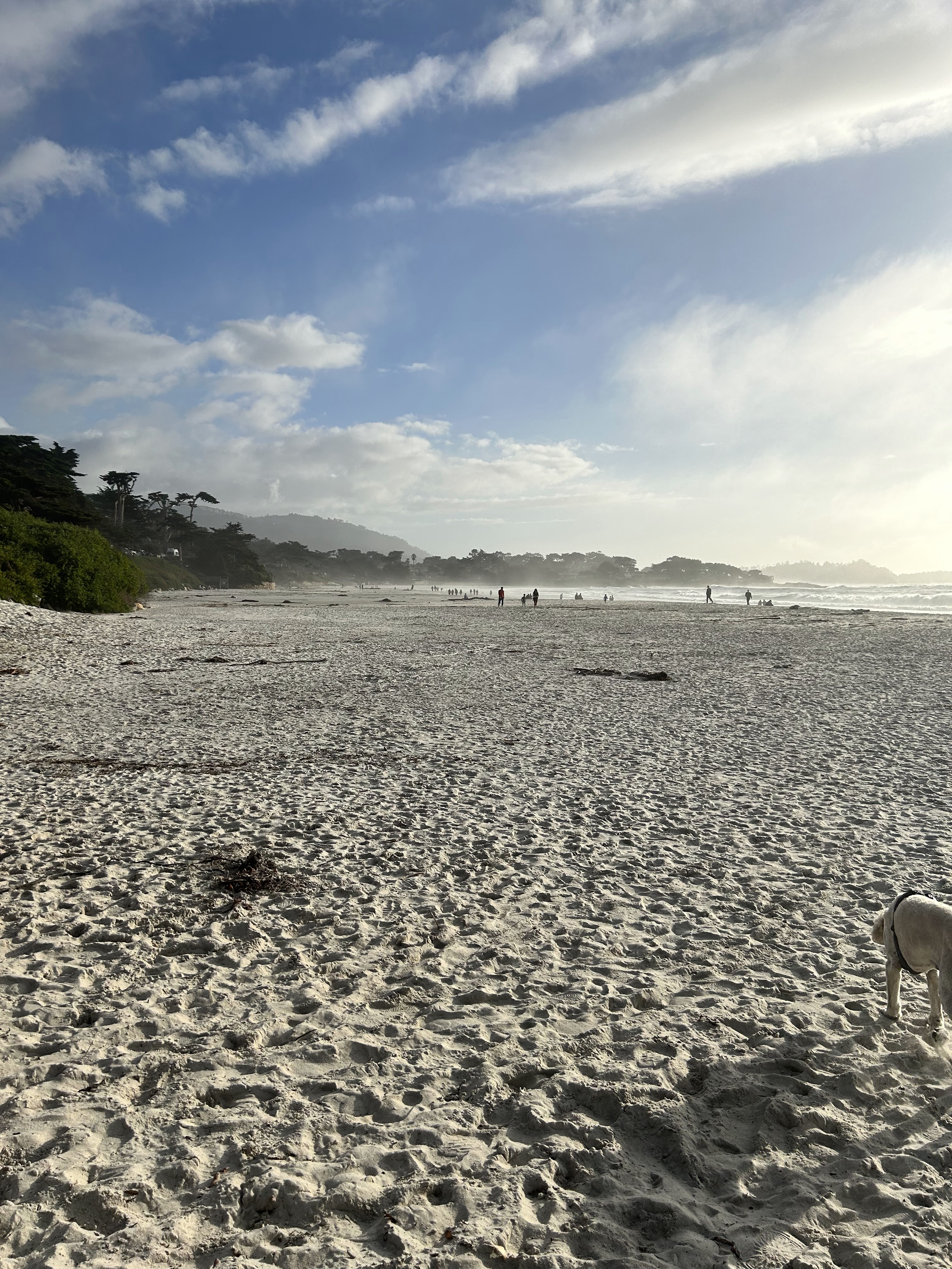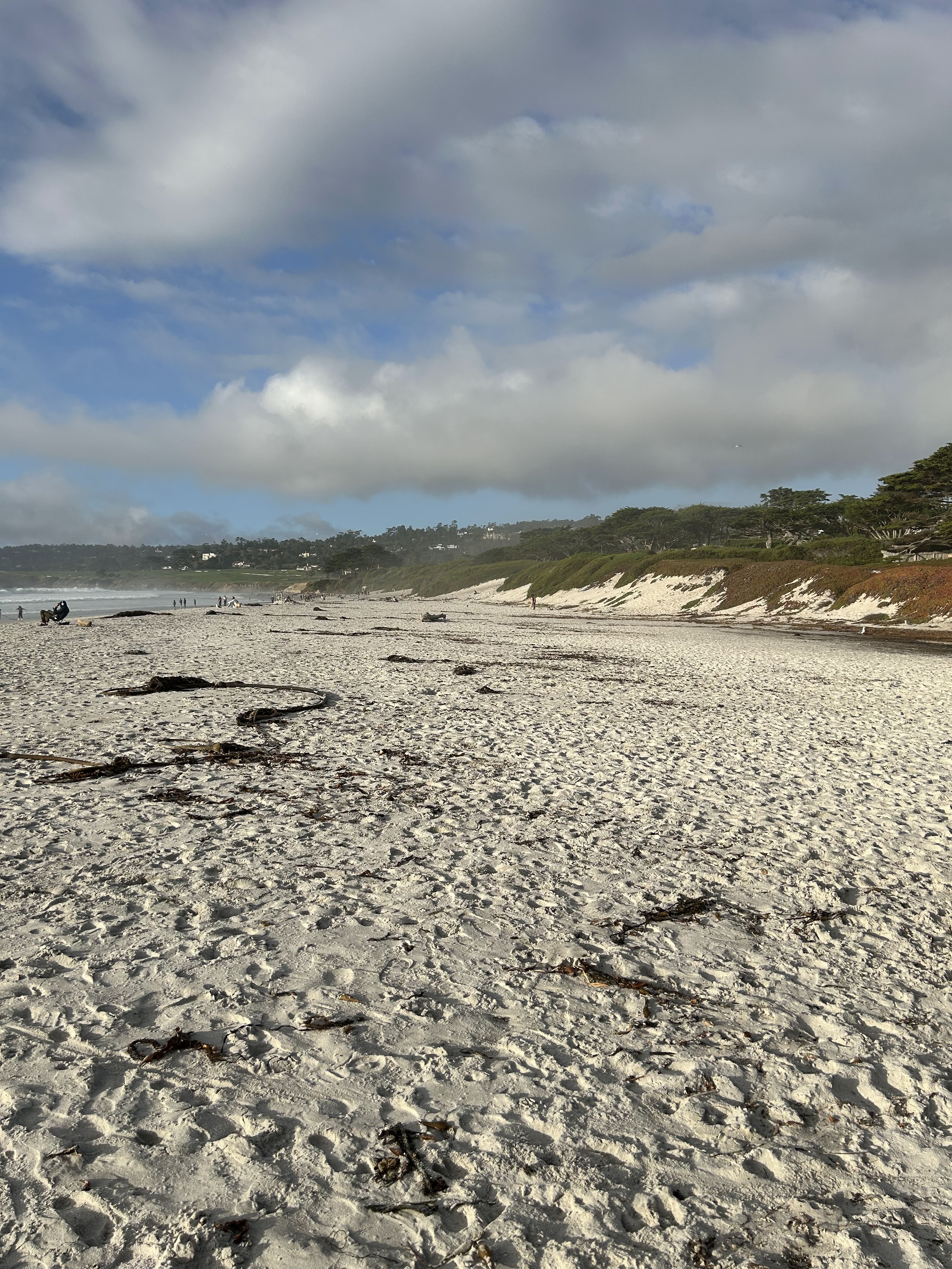 The next morning was a bit rainy but after breakfast and coffee we walked to the beach. Instead of the hike we planned to do, which Pete could not join, we drove along the stunning coast, Monterey and Mission Ranch. We then returned to Carmel and hunkered down at a wine bar for wine and a snack. We purchased a bottle and went next door to an amazing cheese shop for lunch-worthy snacks, made a quick stop for some more beignets and then returned to our room to wait out the rainy afternoon. It felt decadent and exactly the right thing to do.