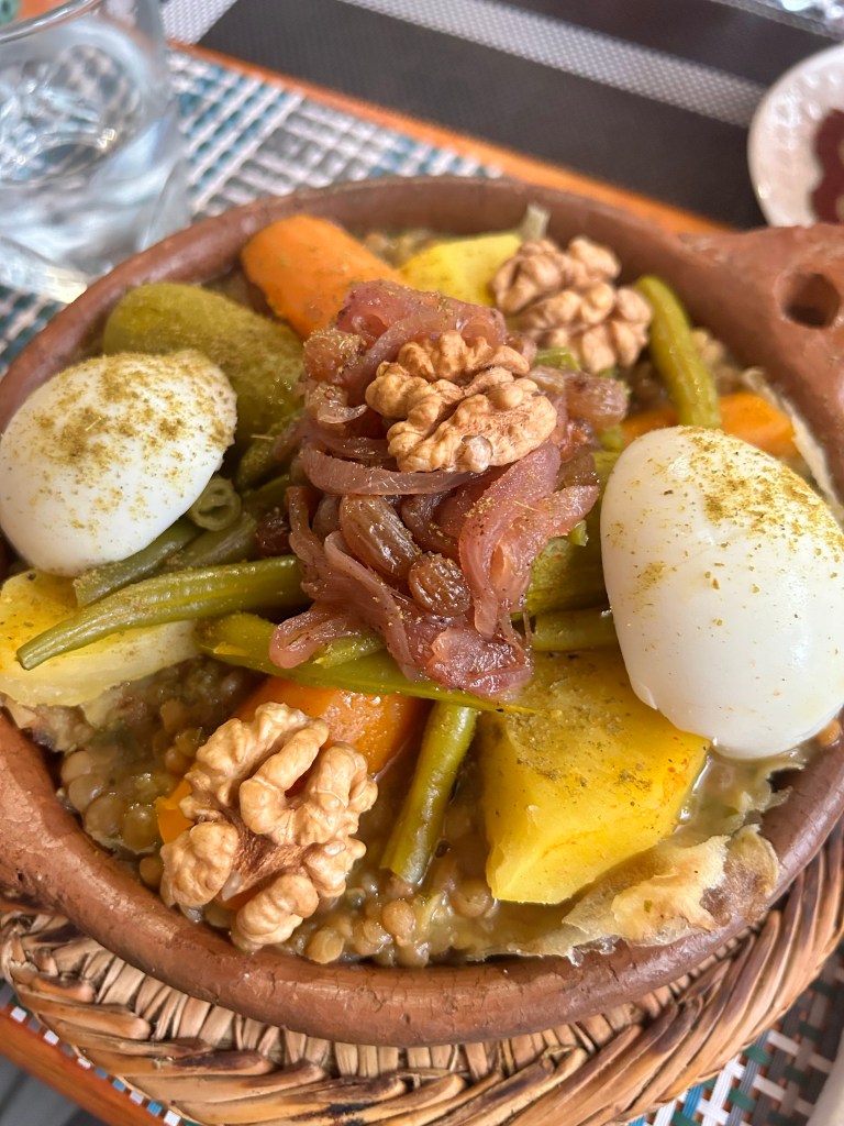 I really enjoyed the diverse beauty in the multiple areas I visited and even though this is a Muslim country, I never felt ill at ease. The people were genuinely kind, helpful and accommodating. What I loved the most was the cooking, especially tajines. I am vegetarian and so ate either tajine or couscous in pretty much every city I visited. One morning my eggs arrived in the tajine and that is when I realized this tajine has a lot of flexibility and even though I almost never buy souvenirs I did bring home a tajine so that I can experiment at home. I plan on, of course, making vegetables in the tajine but I think I am going to also cook pears and apples in it this fall.